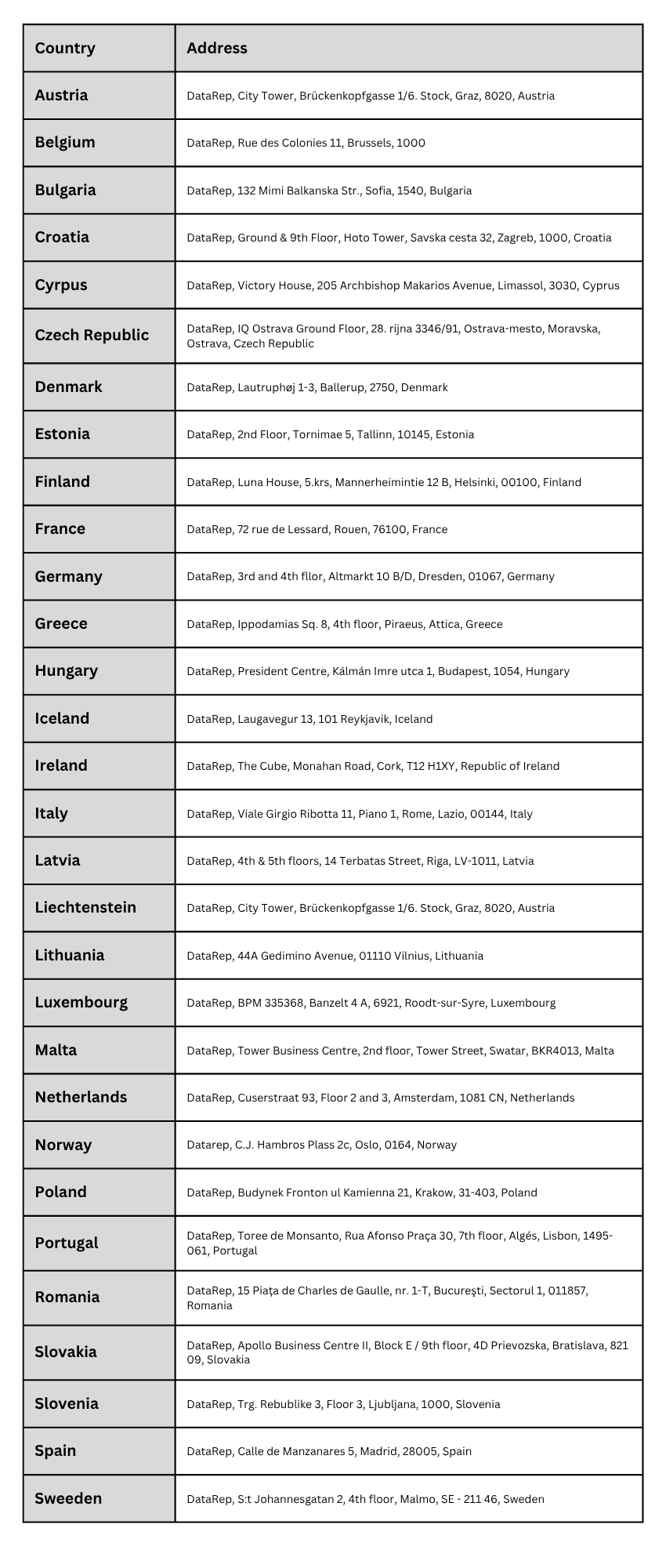 When mailing enquiries, ensure requests are addressed to “DataRep” and not to “Atlas Travel & Technology, Group” otherwise the letter may not reach DataRep.